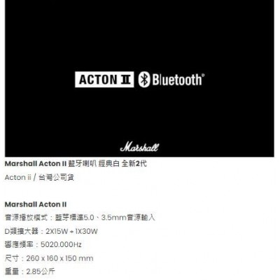 首頁 > 3C商品周邊 > Marshall Acton II 藍牙喇叭 經典白 全新2代 Acton Ⅱ 無線 喇叭 藍牙 音箱 音響