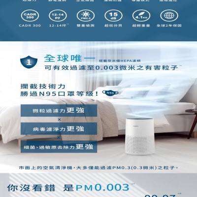 Philips 飛利浦 奈米級空氣清淨機-白小奈★適用12-14坪(AC1715/80)